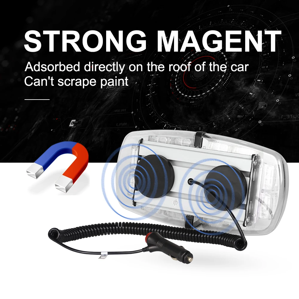 Nlpearl Car Light Assembly 32 LEDs Magnetic Strobe Light Bar 12V/24V Flash Emergency Police Lights